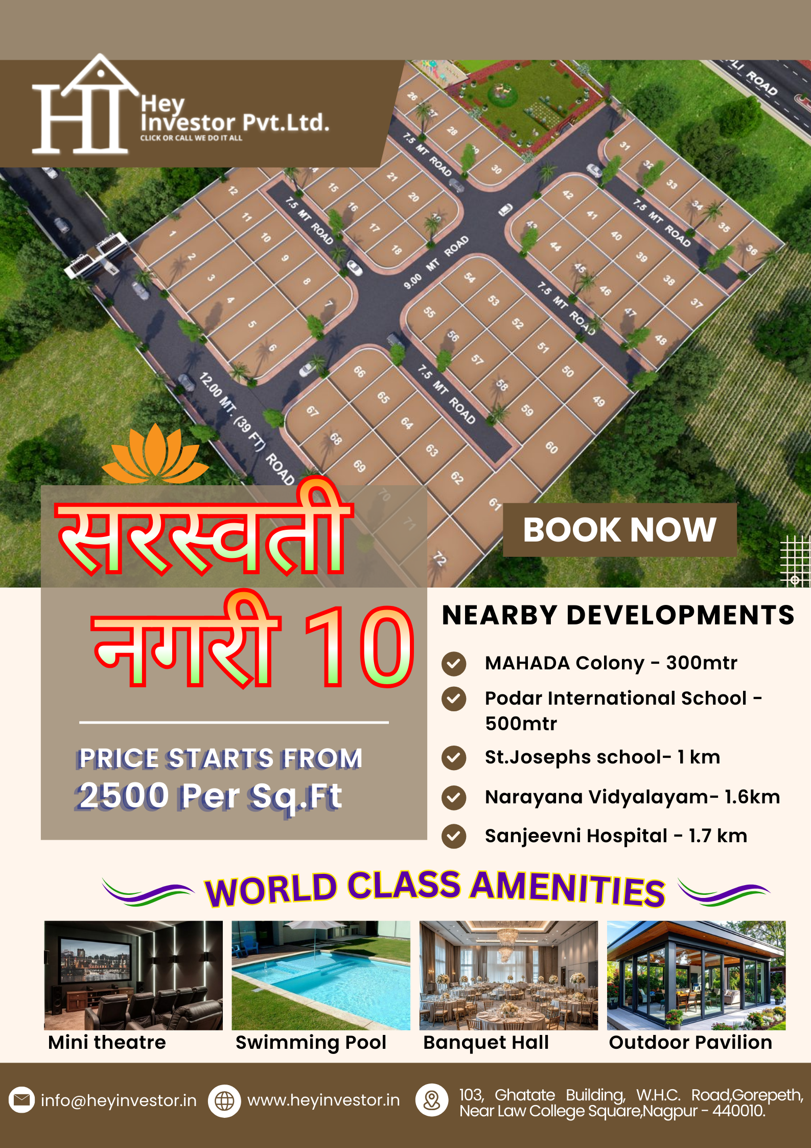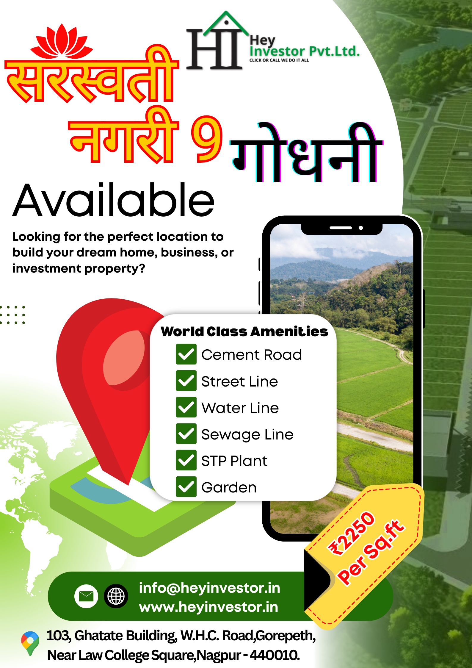 Finding the perfect property is an important and often challenging task, but at Hey Investor Pvt. Ltd., we make this process both accessible and enjoyable. Our comprehensive approach ensures that you have access to the best opportunities in the real estate market. Our team of knowledgeable agents is dedicated to understanding your unique needs and preferences, guiding you through each step with personalized service and expert advice. Whether you're searching for a residential plot to build your dream home or a commercial property to expand your business, we have a wide range of options in prime locations such as Wardha Road, Hingna, and Amravati Road.